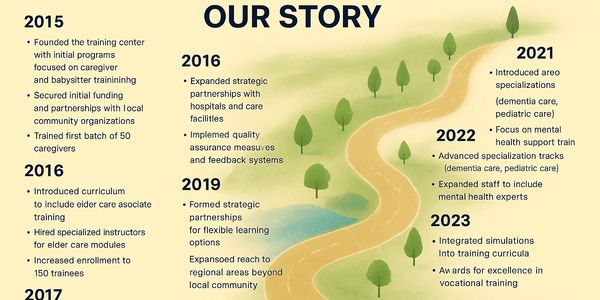 Starting with caregiver and babysitter training, our story evolved through an expanded curriculum, including nursing, office automation and AI-based training. Furthermore, strategic partnerships and tie-ups helped us navigate this growth. We remain committed to developing skilled, dependable professionals who are job-ready for the industry and earn a sustained livelihood for themselves and their families.